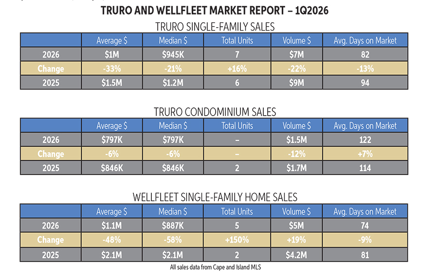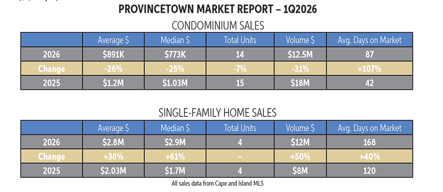 PROVINCETOWN, TRURO AND WELLFLEET 1Q2026 Figures